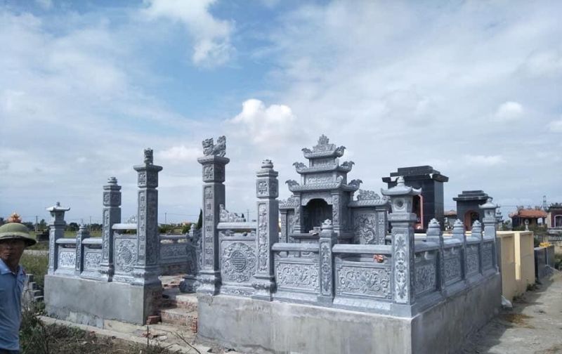 Đa dạng mẫu mã: Từ các mẫu lăng mộ đá xanh đơn giản cho gia đình nhỏ đến những công trình quy mô lớn như khu lăng mộ dòng họ, đình chùa.